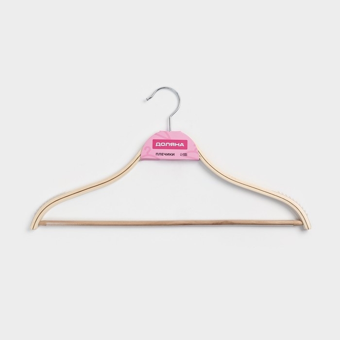 Плечики - вешалка для одежды Доляна, 44×23 см, деревянная сорт А, с перекладиной, антискользящее покрытие, цвет светлое дерево