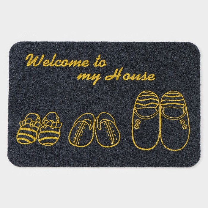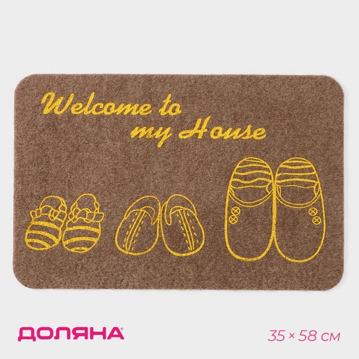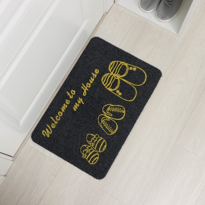 Коврик придверный грязезащитный Доляна «Тапочки», влаговпитывающий, 35×58 см, цвет МИКС