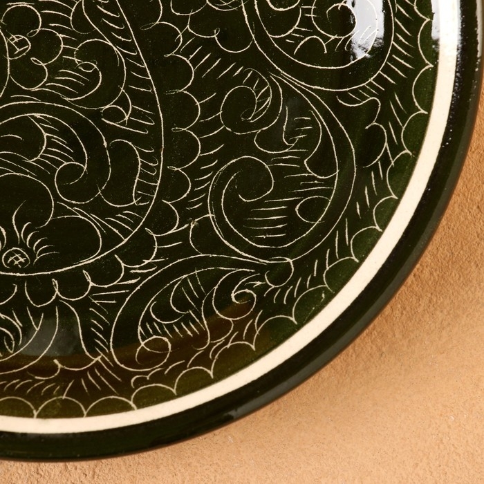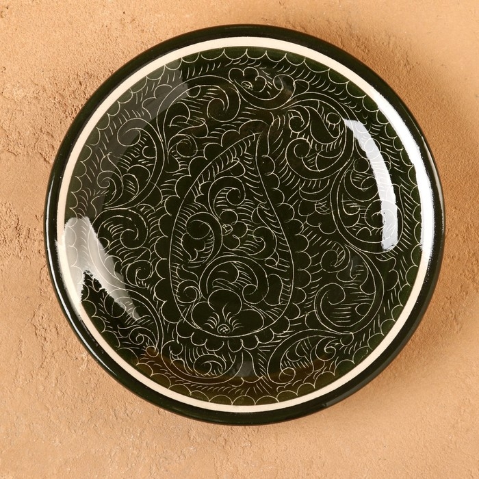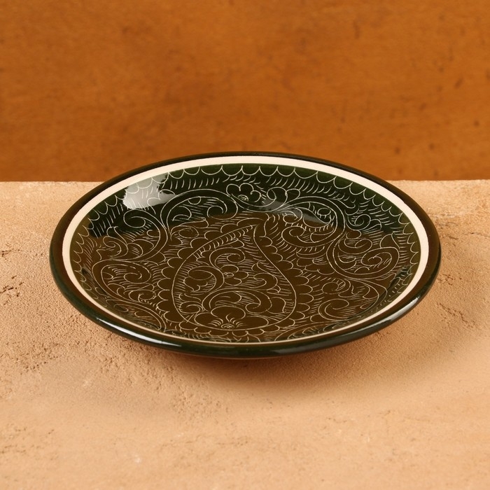 Тарелка Риштанская Керамика "Узоры", зелёная, плоская, 15 см