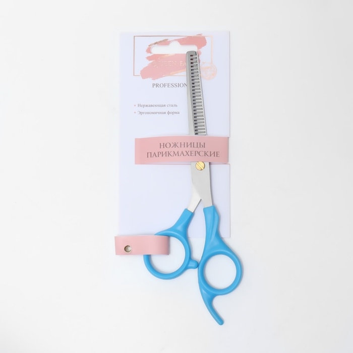 Ножницы филировочные с упором, лезвие — 6,5 см, цвет голубой/серебристый