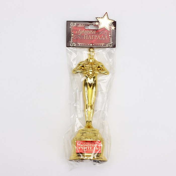 Кубок наградная фигура учителю «Золотой учитель», оскар, золото, 18 х 6,3 см