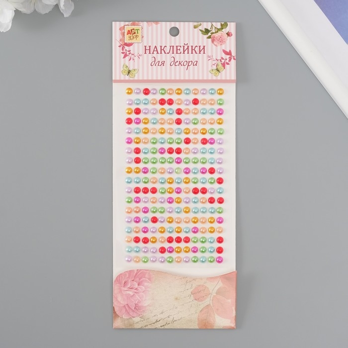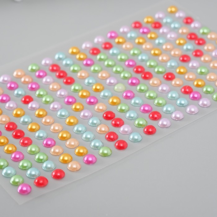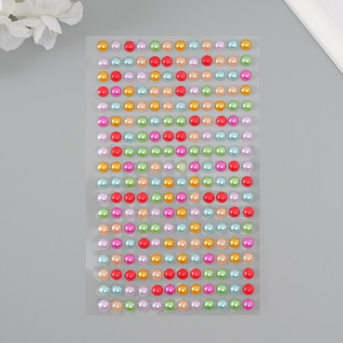 Наклейка пластик стразы диаметр 0,5 см "Перламутр цветной" 24х10 см