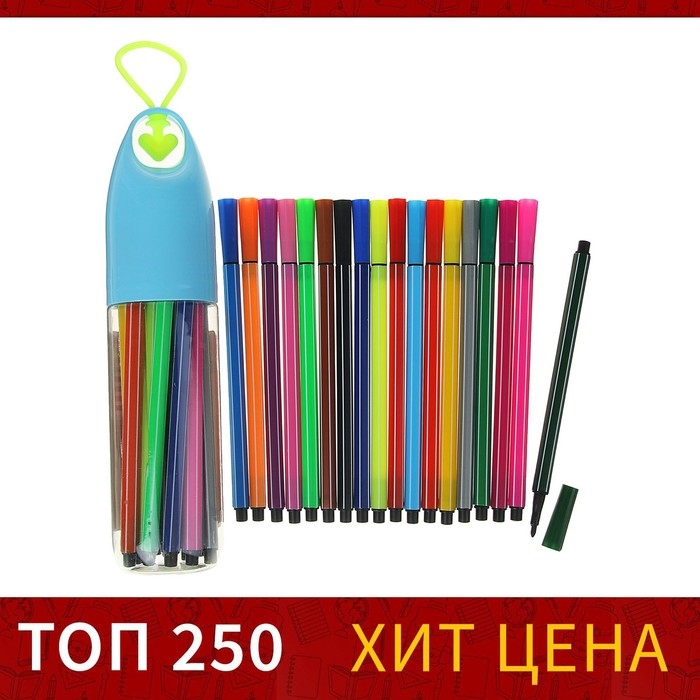 Фломастеры, 18 цветов, в пластиковом тубусе с ручкой, вентилируемый колпачок, МИКС