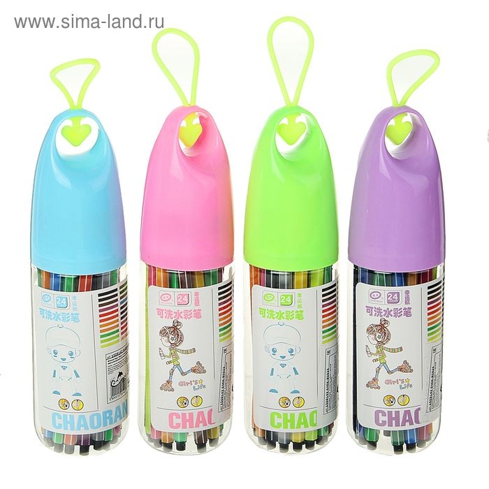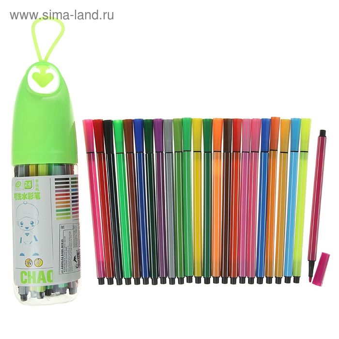 Фломастеры, 24 цвета, в пластиковом тубусе с ручкой, вентилируемый колпачок, МИКС