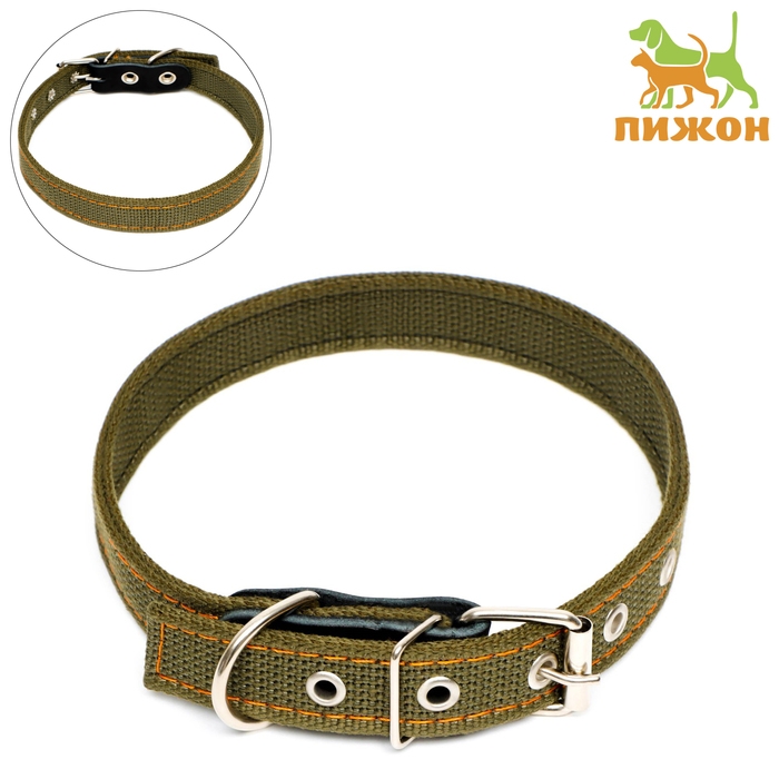 Ошейник брезентовый двухслойный, 54 х 2,5 см, ОШ 35-45 см, хаки
