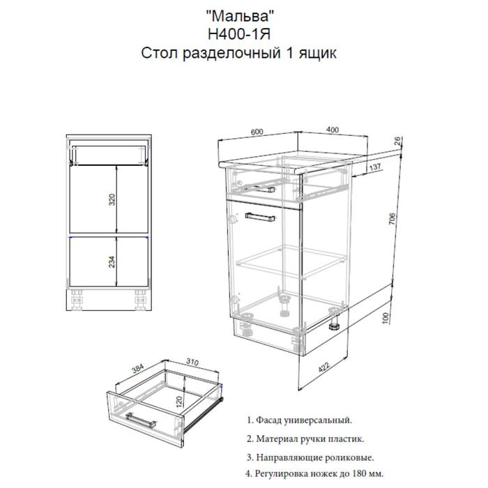 Шкаф напольный Мальва, Н400-1Я, 400х450х850, Венге/Лоредо