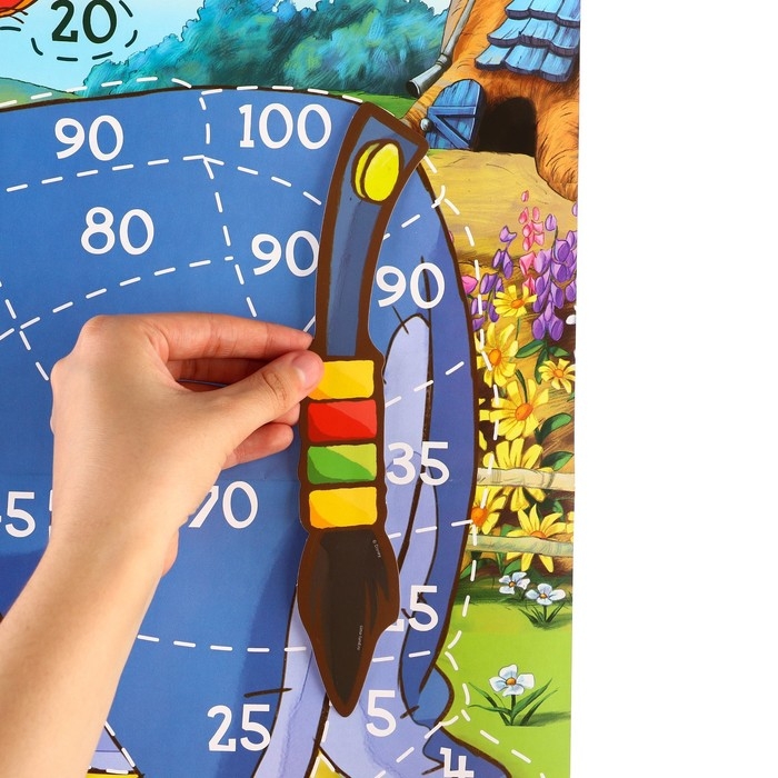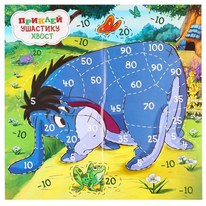 Разверните большое игровое поле, прикрепите его к стене, а хвостики из набора положите рядом. Закрывайте глаза, берите хвост и с помощью липкой ленты старайтесь приклеить его в нужное место. Чем точнее попадание, тем больше победных очков у игрока.