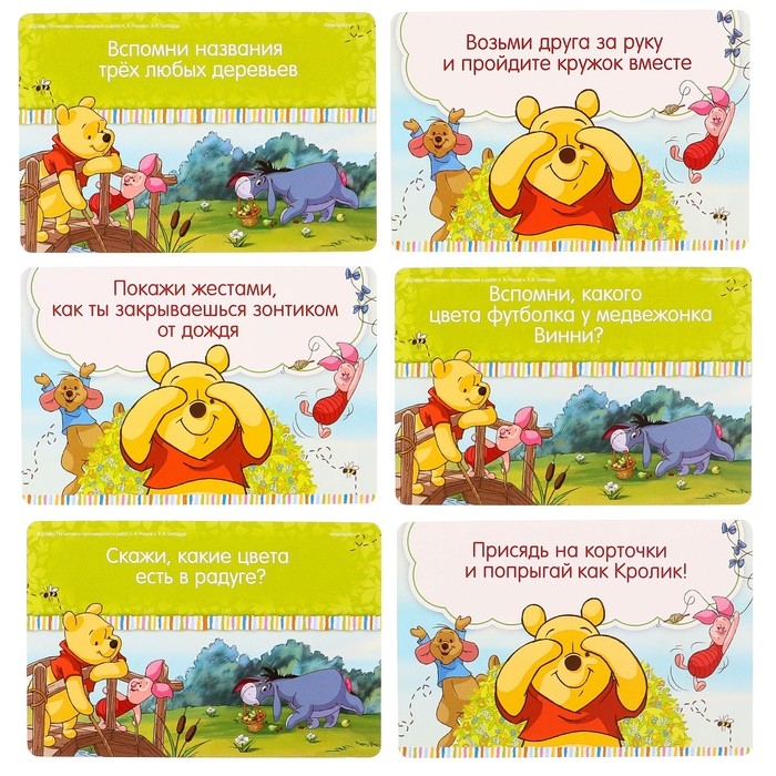 А у кого окажется меньше баллов, тот вытягивает карточки и выполняет весёлые задания от медвежонка Винни.