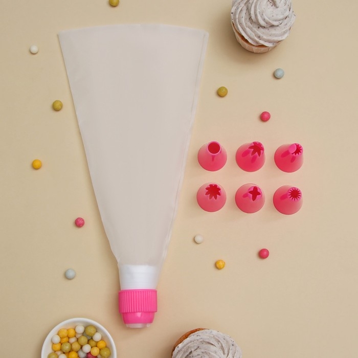 Набор предназначен для украшения выпечки и готовых кондитерских изделий. Наполните мешок айсингом, кремом или мастикой, выберите насадку — и приступайте к созданию кулинарного шедевра!