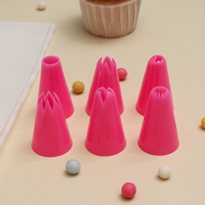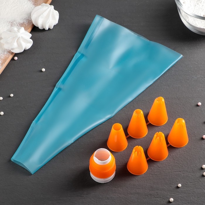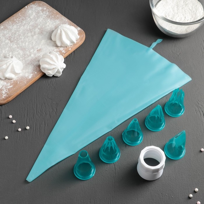Набор кондитерский Доляна «Бирюза», 6 насадок (основание насадки 2,5 см), 29×19×3,5 см, насадки и цвет МИКС