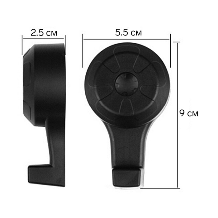 Вешалка-крючок на подголовник, два крючка, чёрный