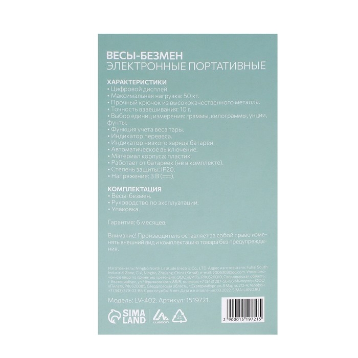 Весы Luazon предназначены для определения массы различных грузов. Прибор обладает высокой точностью и прост в применении. Стальной крючок будет удобен в быту.