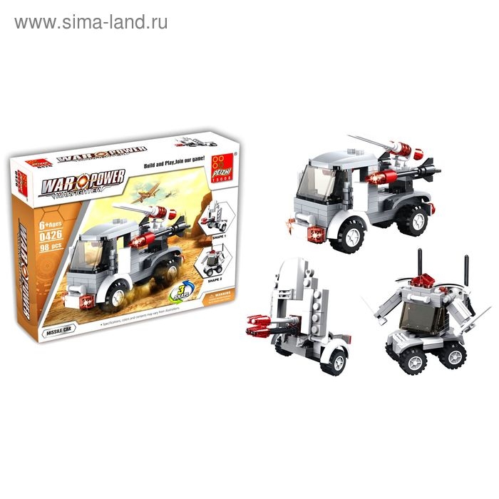Игровой набор содержит 98 деталей и позволяет сконструировать три варианта техники.
