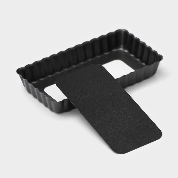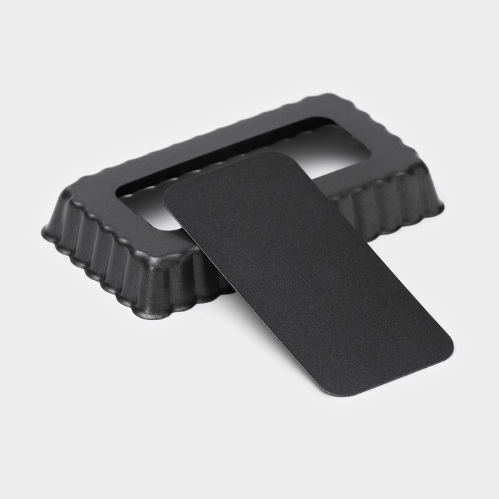 Форма для выпечки «Рифлёный прямоугольник», 12×6,5 см, съёмное дно, антипригарное покрытие, цвет чёрный