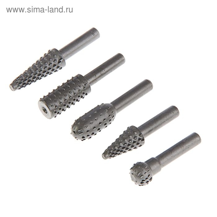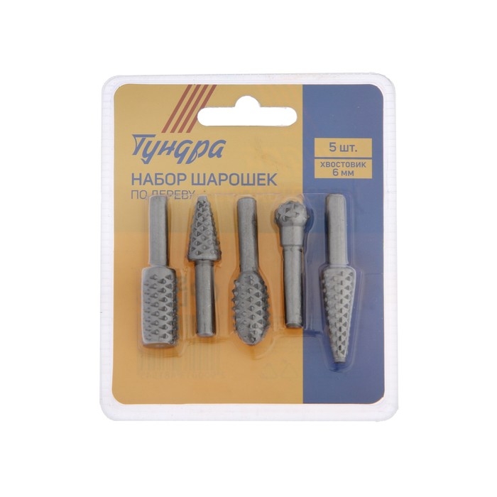 Набор шарошек по дереву ТУНДРА, диаметр хвостовика 6 мм, 5 шт.