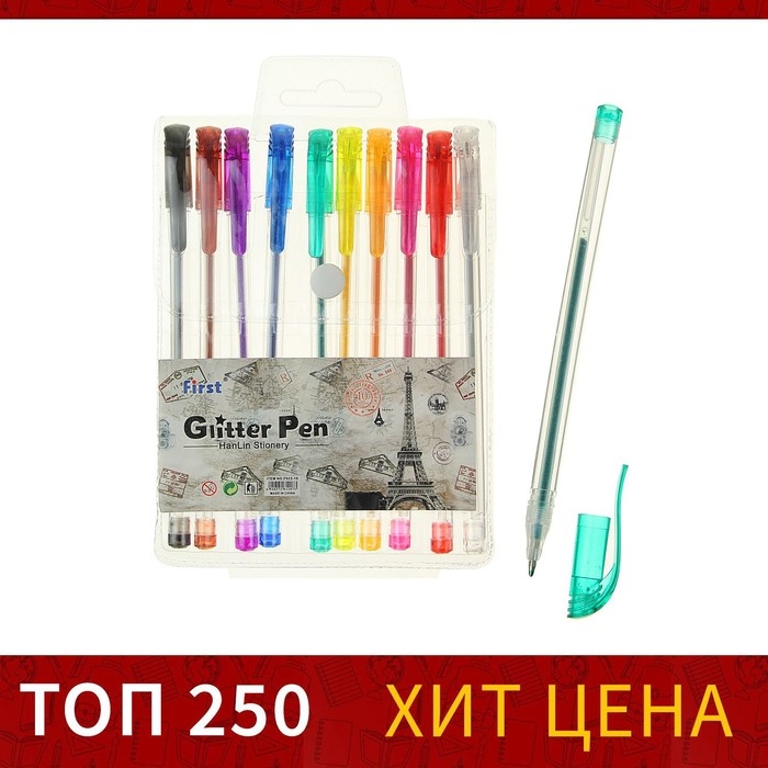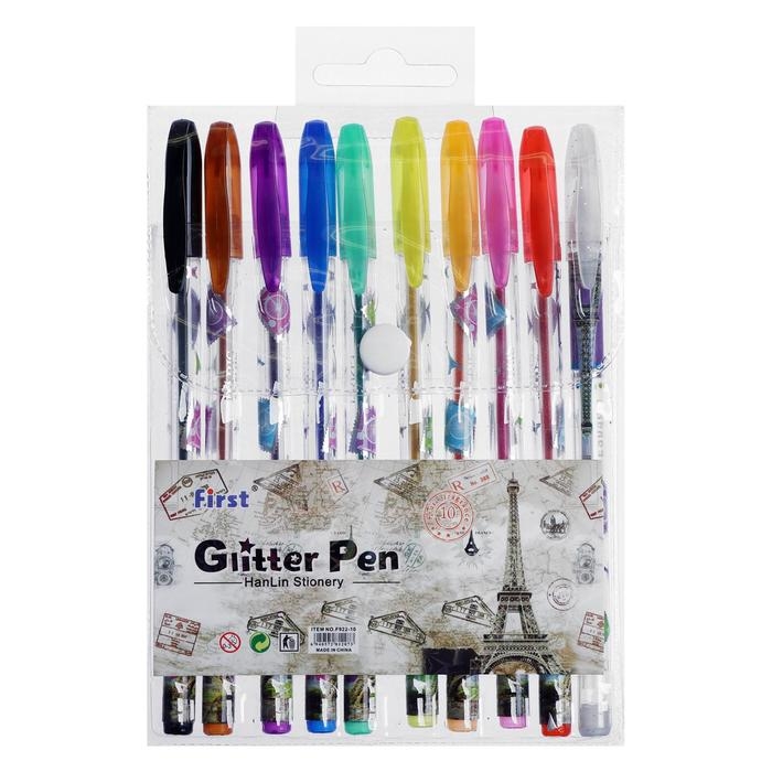 Набор гелевых ручек 10 цветов, металлик, с блестками