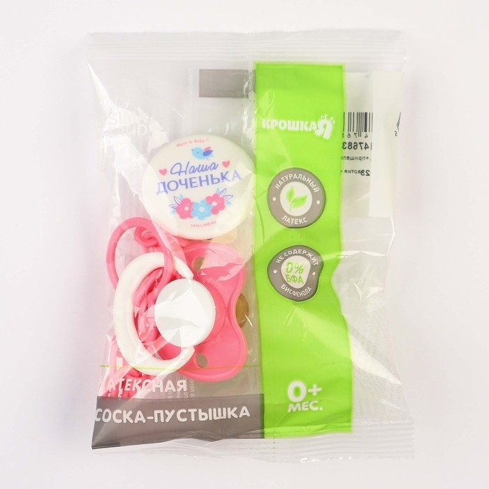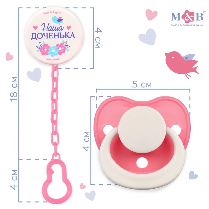 Соска - пустышка латексная классическая «Наша доченька», от 0 мес., с держателем, цвет розовый