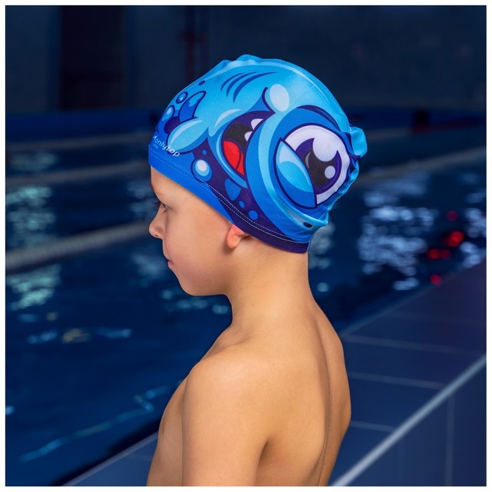 Шапочка для плавания детская «Акула», тканевая, обхват 46-52 см
