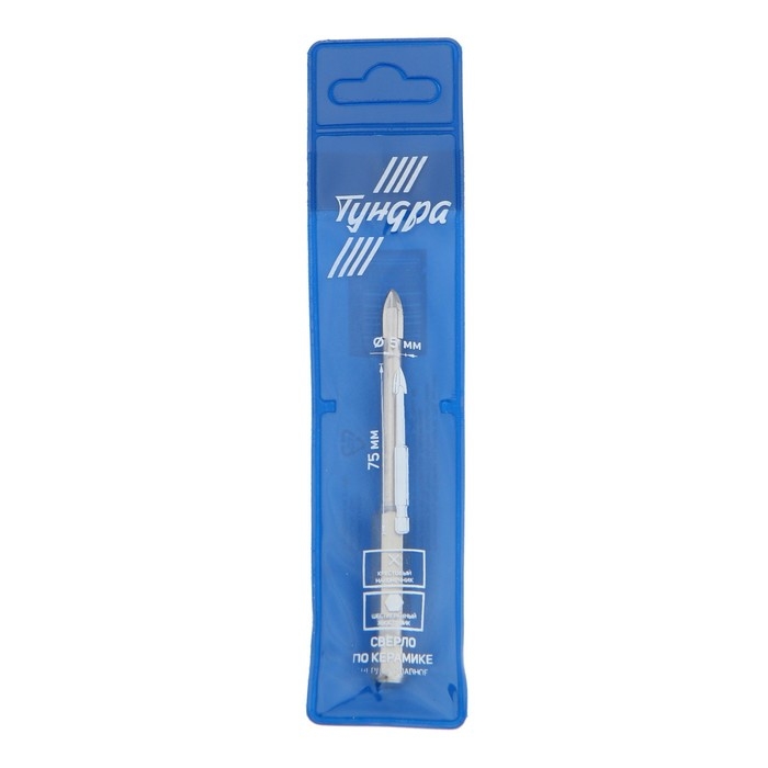 Сверло по керамике твердосплавное ТУНДРА, крестовый наконечник, шестигр. хвостовик, 5 мм