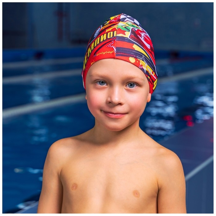 Шапочка для плавания детская ONLYTOP «Чемпион», тканевая, обхват 46-52 см