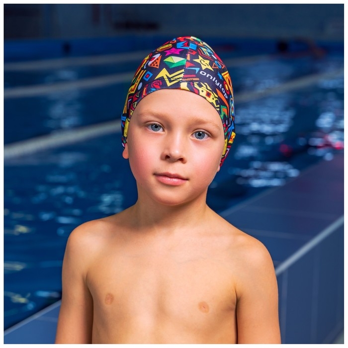 Шапочка для плавания детская ONLYTOP Fusion, тканевая, обхват 46-50 см