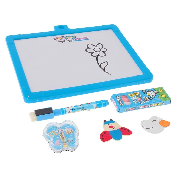 Доска для рисования магнитная двухсторонняя,под маркер и мел,губка, мел 3 шт., маркер, магниты 2 шт.