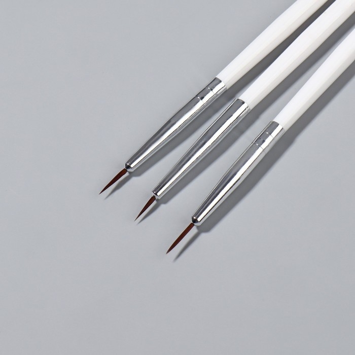 Набор кистей для дизайна ногтей, 3 шт, 18 см, цвет белый