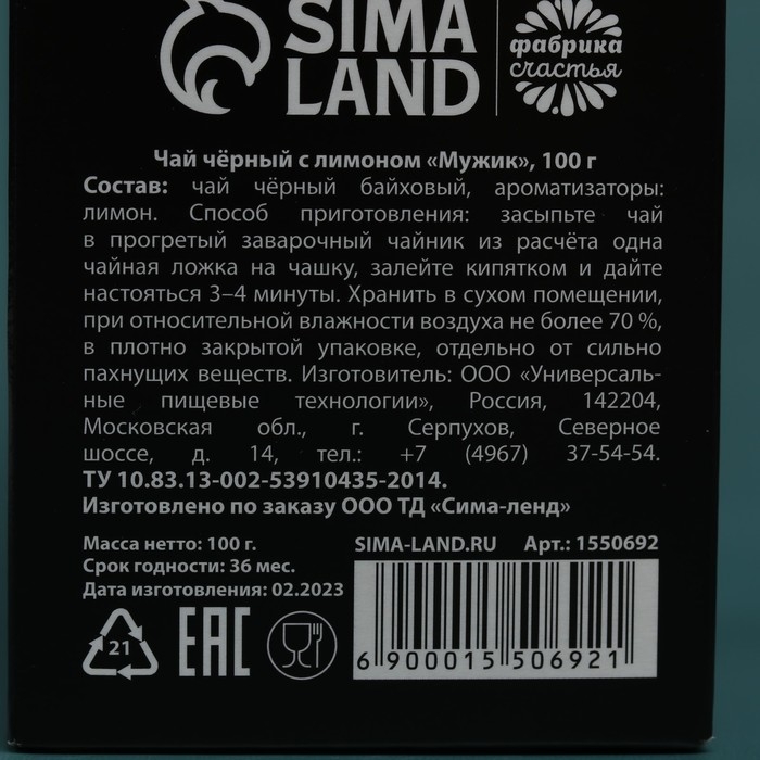 Чай чёрный «Настоящему мужику»: с ароматом лимона, 100 г. (18+)