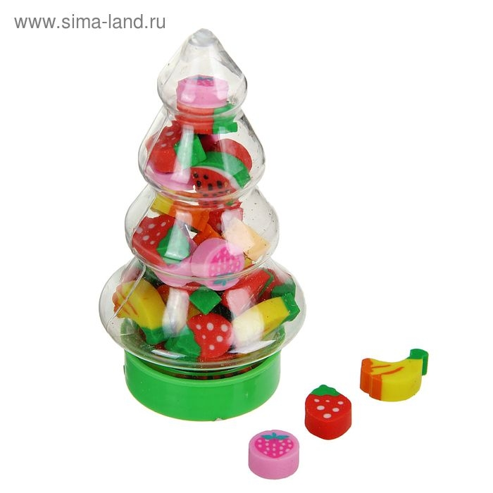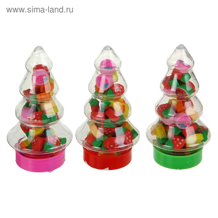 Набор ластиков фигурных, 30 шт., фигурки в бутылочке пластиковой «Елочка», МИКС