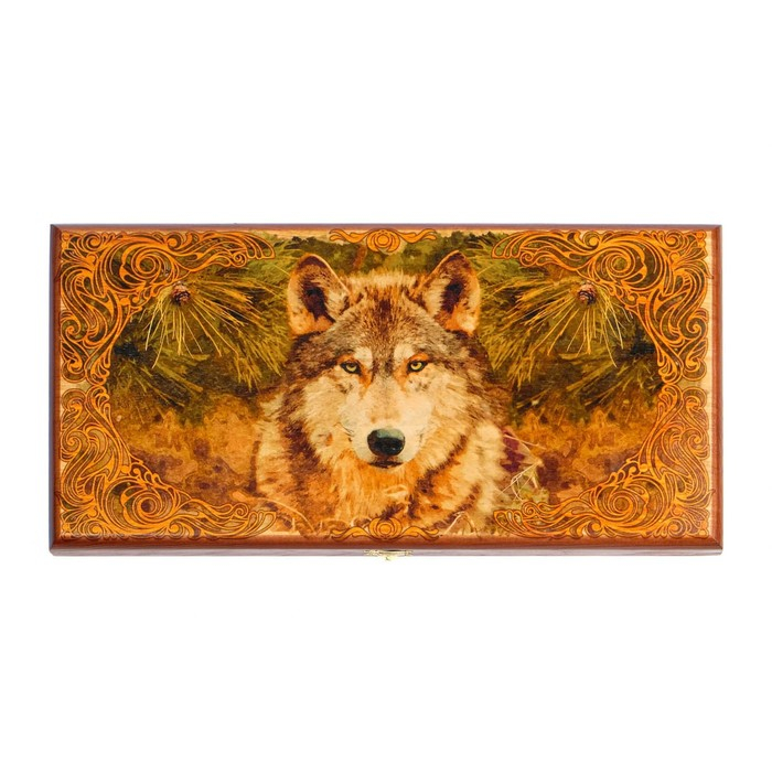 Нарды деревянные большие, настольная игра "Таежный волк", 40 х 40 см, с шашками