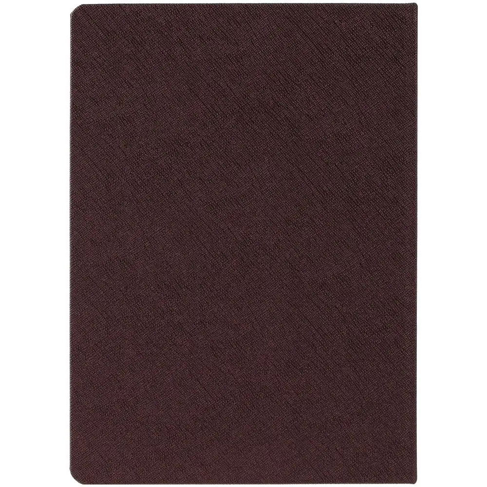 Ежедневник с твердой обложкой и золотистым обрезом, выполнен из материала Saffian, коричневый, дополнен ляссе в цвет обложки.