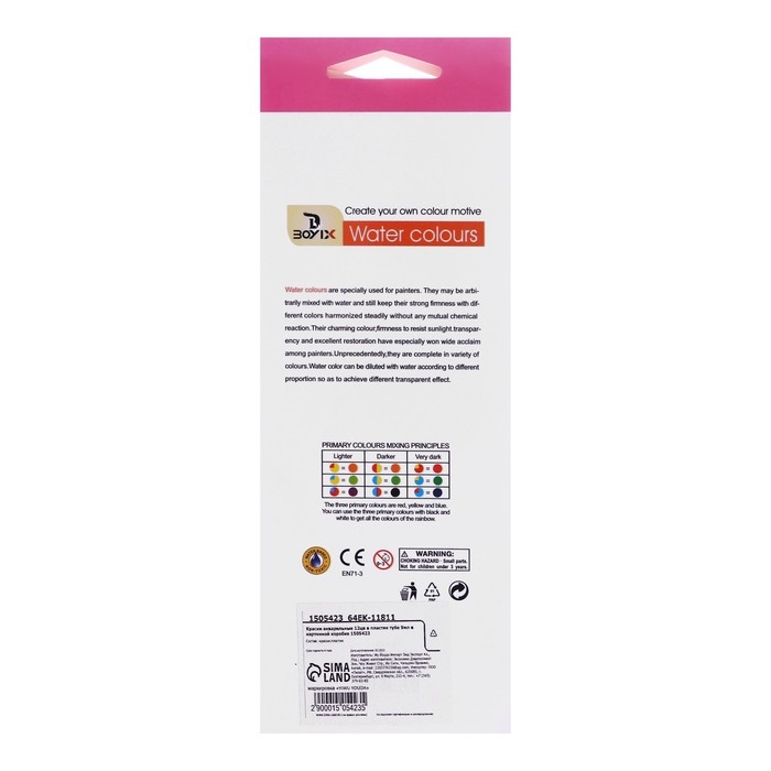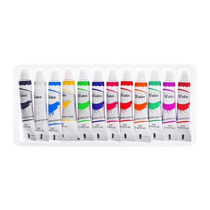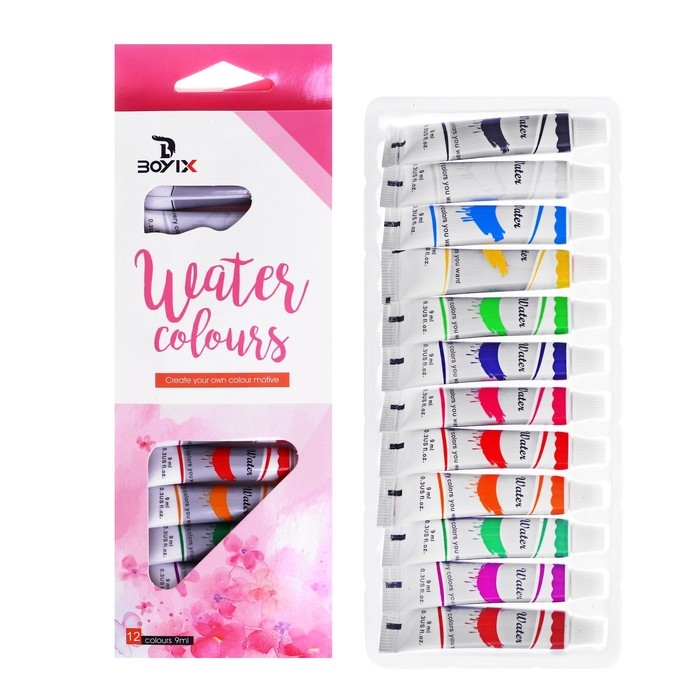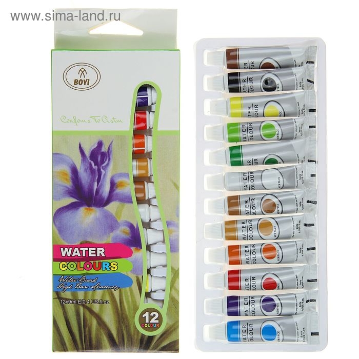 Краски акварельные, 12 цветов, в пластиковой тубе, 9 мл, в картонной коробке