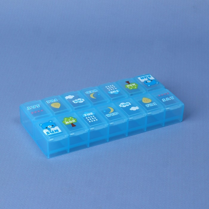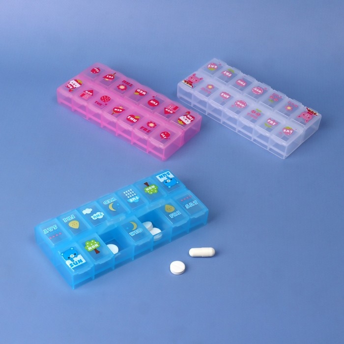 Таблетница «Картинки», 13 × 6 × 2 см, 14 секций, цвет МИКС