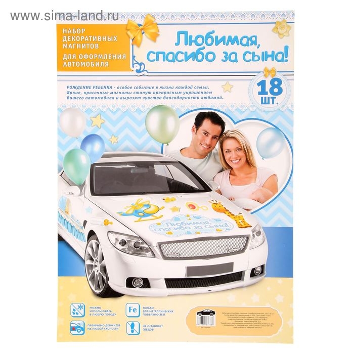 Набор магнитов на авто «Любимая, спасибо за сына!», на выписку