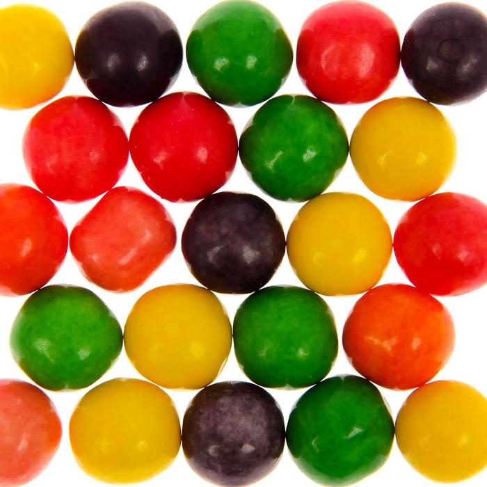 Состав: сахар, основа полимерная, патока, влагоудерживающий агент (глицерин пищевой), регулятор кислотности (кислота лимонная), ароматизаторы ("Тутти-фрутти", "Лимон", "Яблоко", "Апельсин", "Клубника", "Вишня"), эмульгатор (соевый лецитин), красители пищевые (Тартразин Е102, Диоксид титана Е171, Солнечный заказ FCF Е110, Кармуазин Е122, Красный очаровательный АС Е129, Синий блестящий FCF Е133), глазирователь (воск карнаубский). Масса нетто: 40 г. Срок годности: 24 мес.
