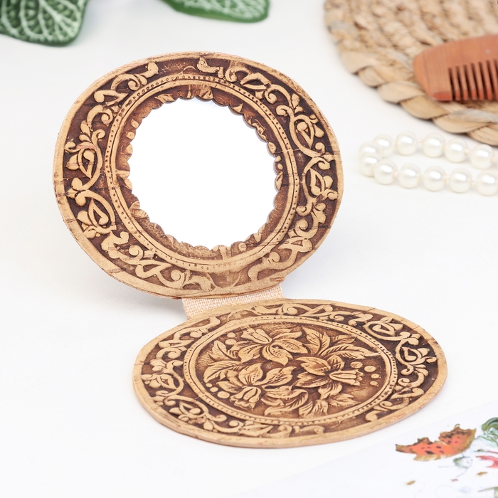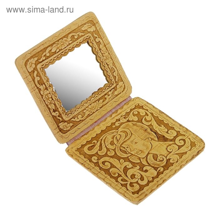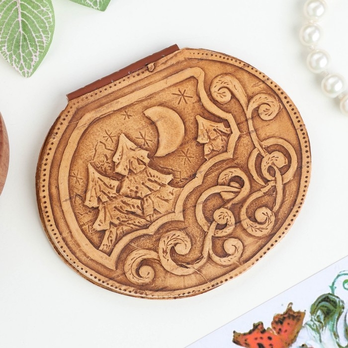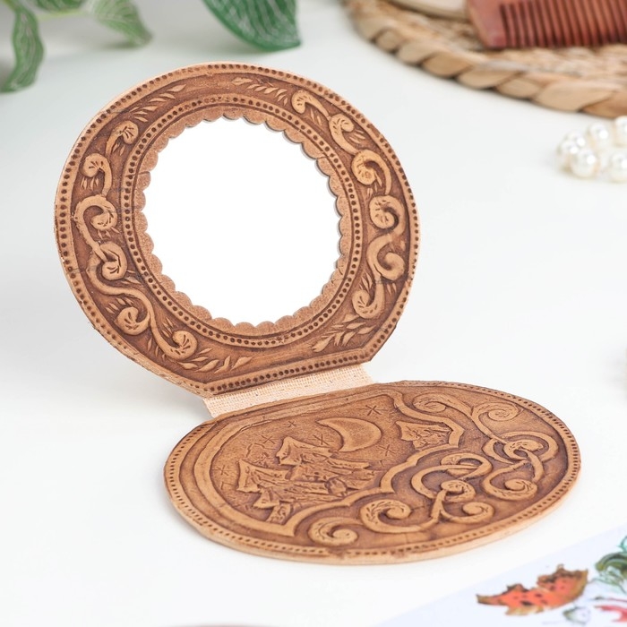 Маленькое берестяное зеркало помещается в любой женской сумочке и может послужить прекрасным подарком для девушки.