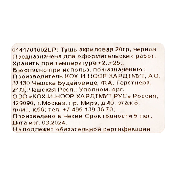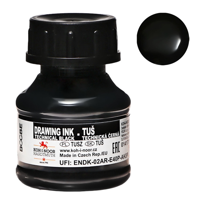 Тушь для письма и рисования художественная 20 мл, Koh-I-Noor, чёрная