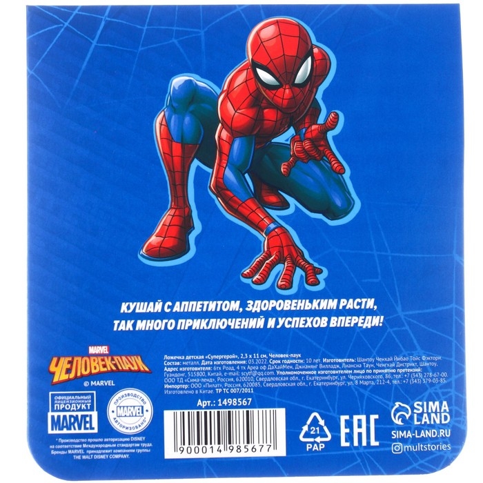 Ложечка детская, 2,3 х 11 см "Супергерой", Человек-паук