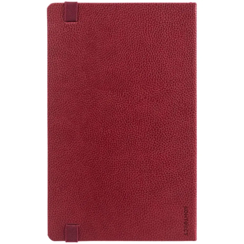 Ежедневник с твердой обложкой, выполнен из материала LaFite, красный РР, дополнен резинкой с металлическим круглым шильдом и ляссе в цвет обложки.