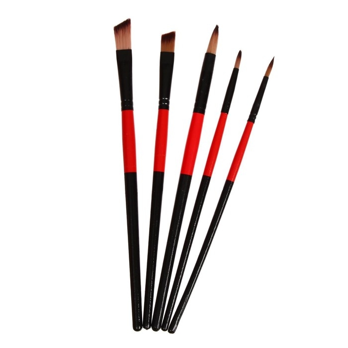 Набор кистей нейлон 5 штук: 3 круглые, 2 плоские
