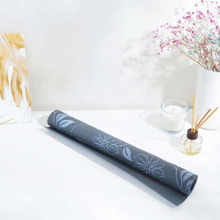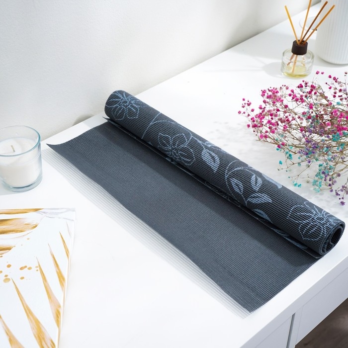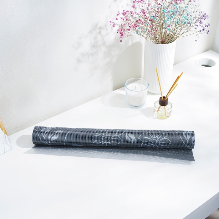 Коврик противоскользящий Доляна «Вьющиеся цветы», 45×100 см, цвет серый