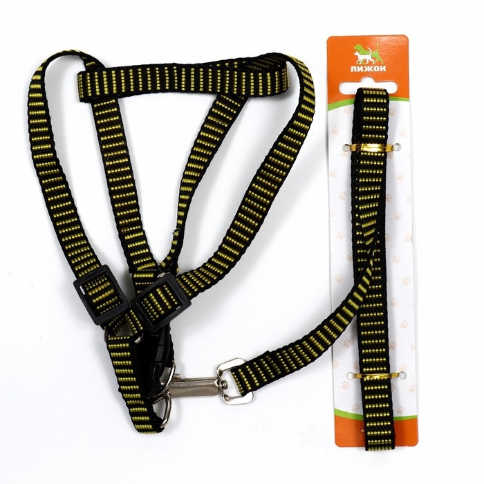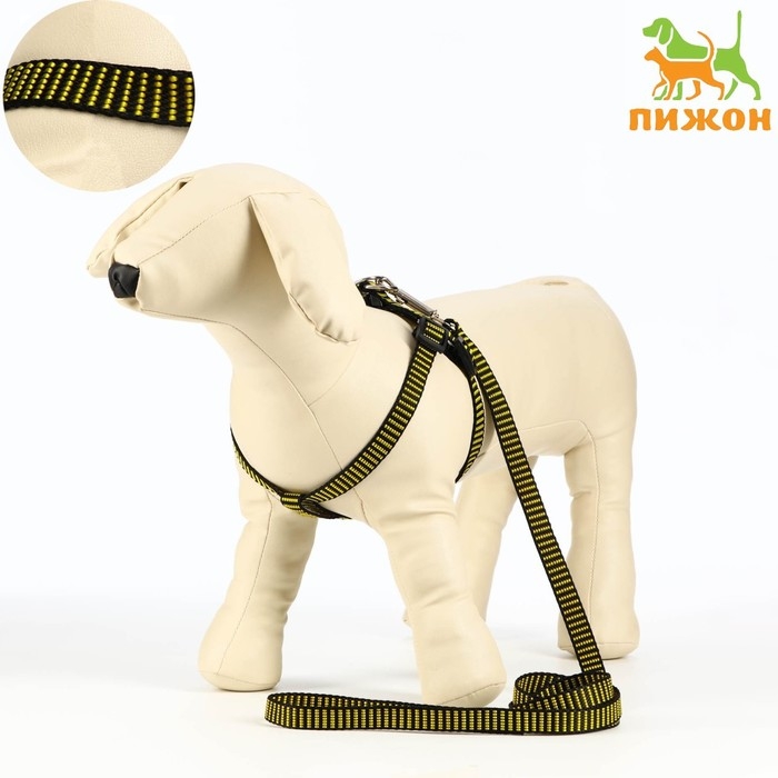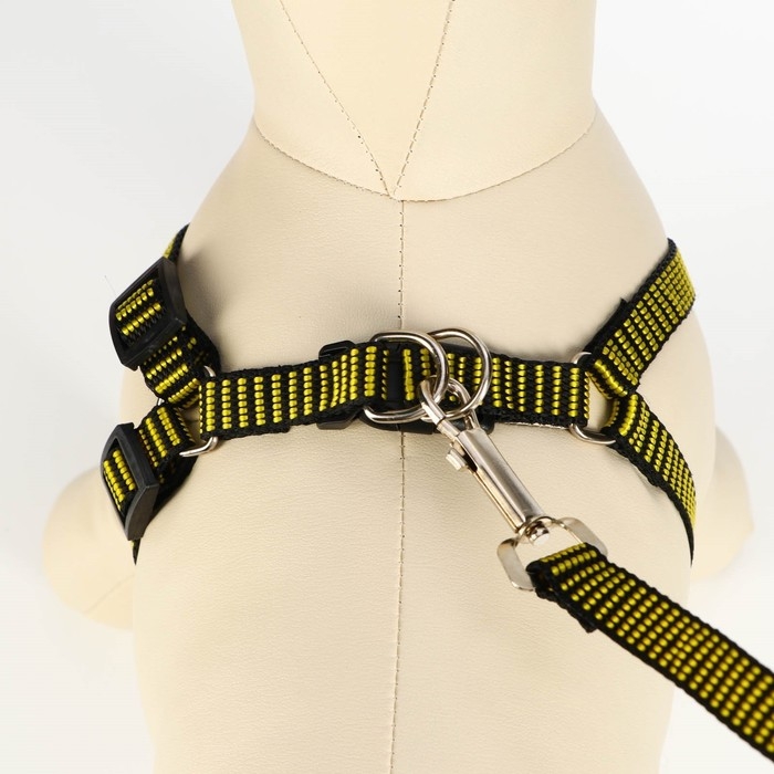 Комплект амуниции рельефный, 1,5 см, шлейка 36-49 см, поводок 120 см, жёлто-чёрный