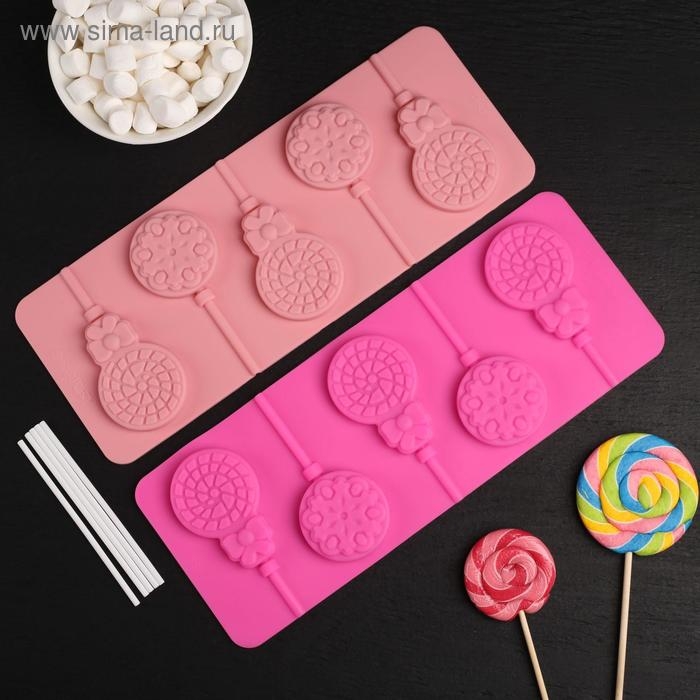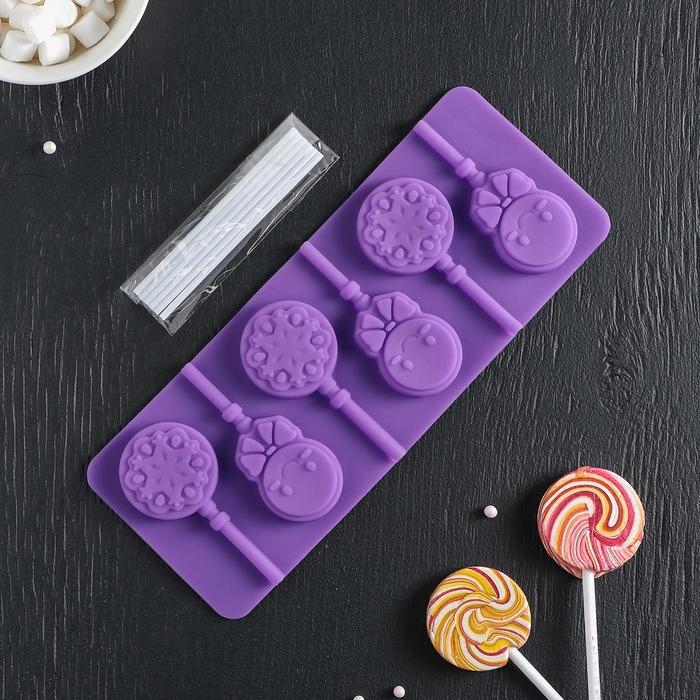 Форма для леденцов Доляна «Вкусная сладость», силикон, 26,5×11,5 см, 12 ячеек (d=3,5 см), с палочками, цвет МИКС