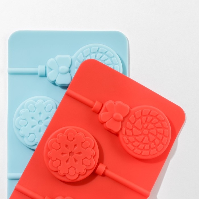Форма для леденцов Доляна «Улыбка», силикон, 25×9,5 см, 5 ячеек, с палочками, цвет МИКС