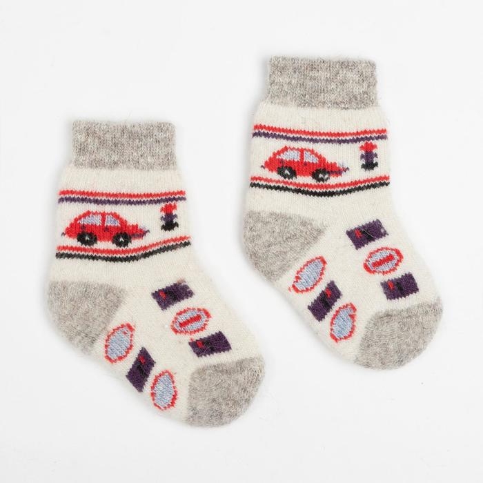 Носки детские шерстяные «Автомобильчик», цвет белый, размер 10
