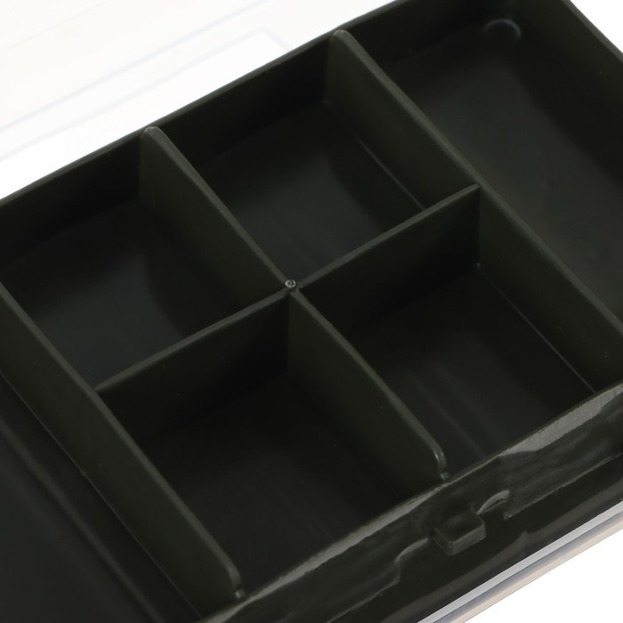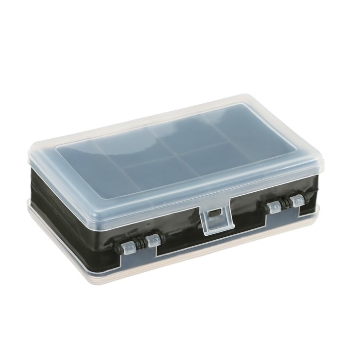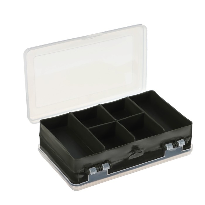Двусторонняя коробочка выполнена из прочного полипропилена, не вступающего в химическую реакцию с мягкими наживками. Через прозрачную крышку легко разглядеть нужную приманку.