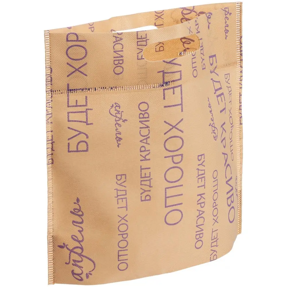 Сумка из спанбонда с донной складкой и прорубными ручками — это экологичный и практичный аналог полиэтиленового пакета. Подходит для рекламных материалов и необъемных товаров. Края сумки спаяны.