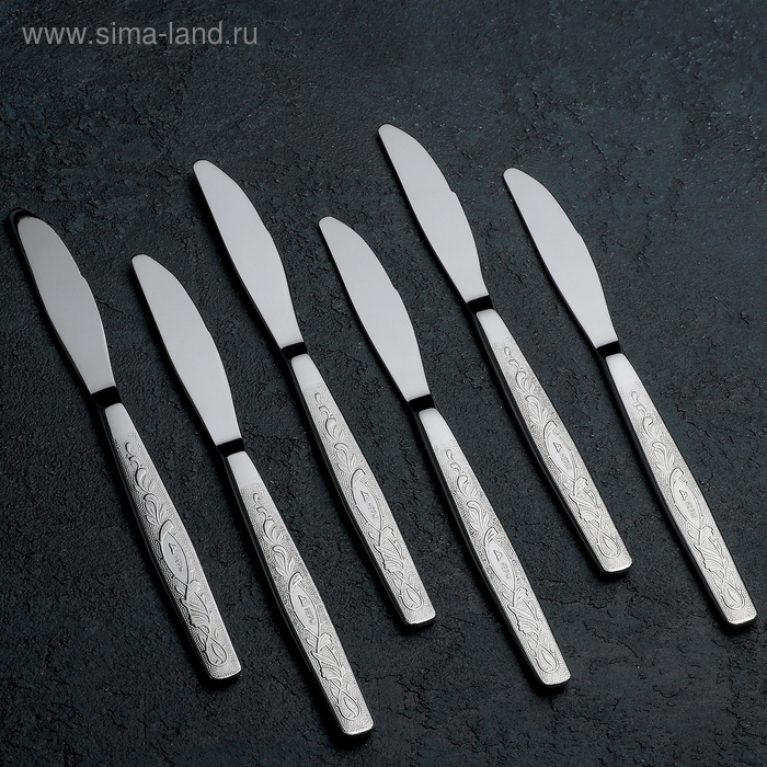 Ножи столовые из нержавеющей стали Доляна «Капля», длина 23 см, 6 шт, цвет серебряный