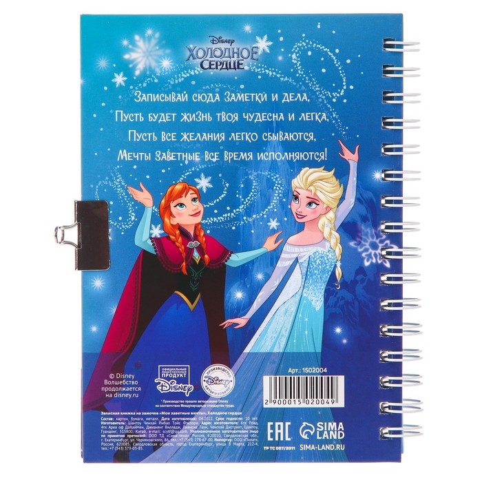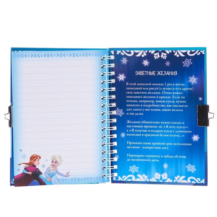 Записная книжка на замочке А6, "Мои заветные мечты", 50 листов, Холодное сердце