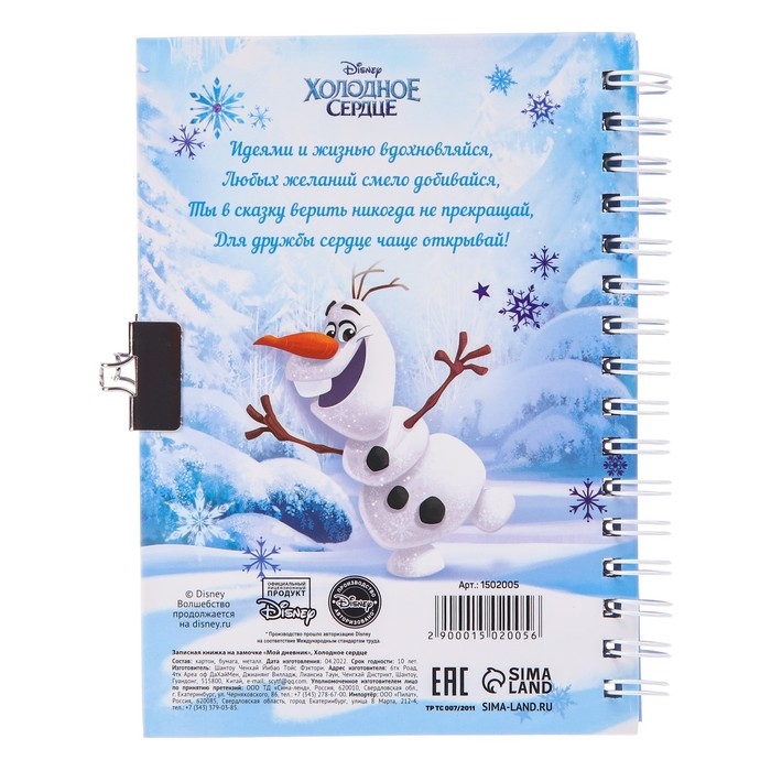 Записная книжка на замочке А6, "Мой дневник", 50 листов, Холодное сердце